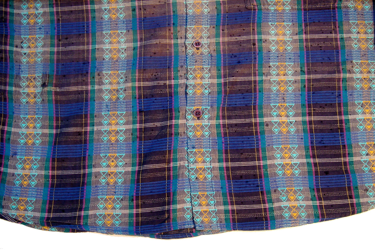 Les caches que j’ai constitué avec les bas de chemises et de tee-shirts que je portais lors de mes périples pour découvrir les lieux amènent un lien de proximité avec le public.