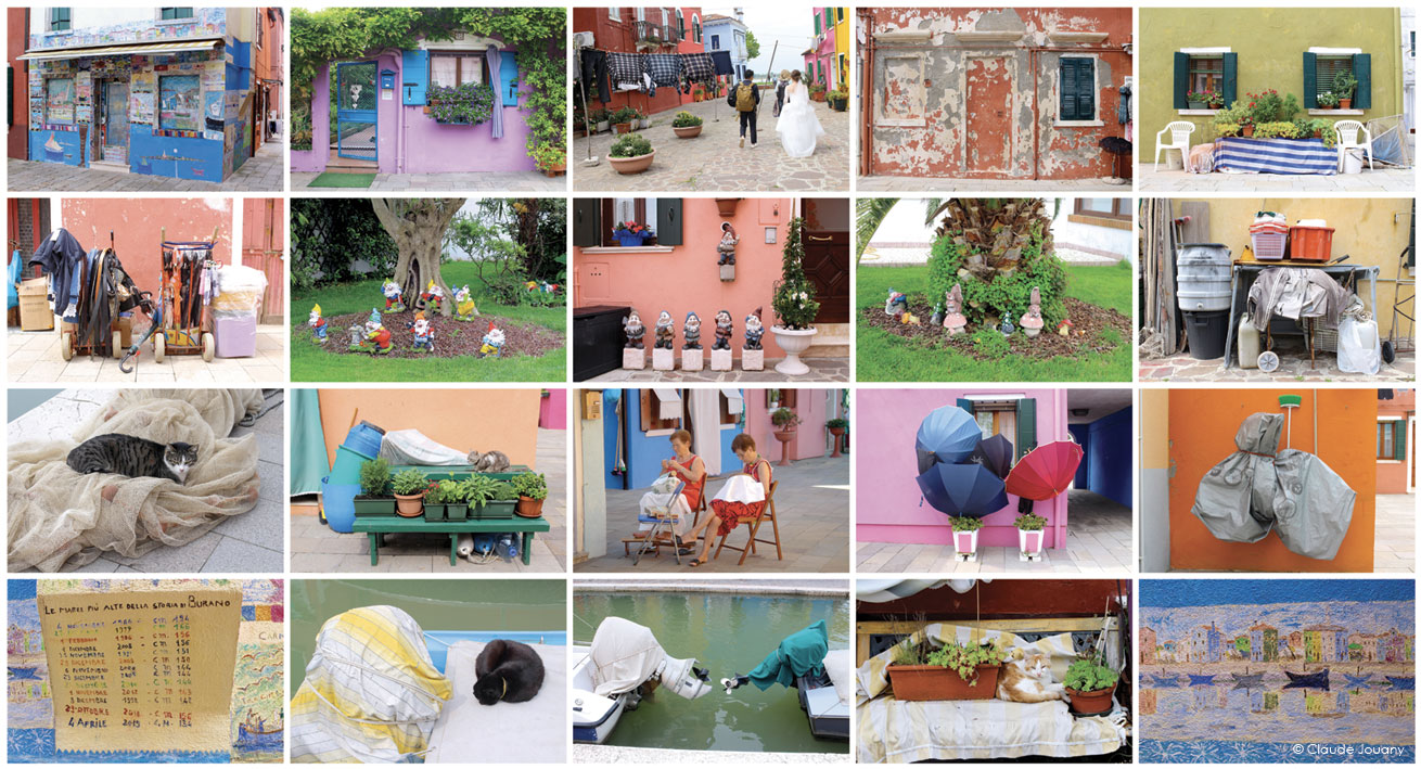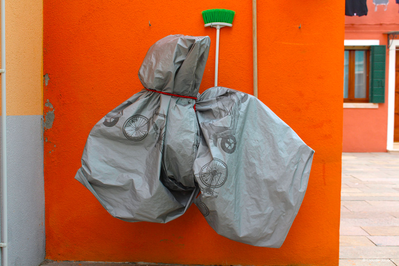 Dans les ruelles de Burano, l’harmonie des couleurs et des formes ne se limite pas aux façades éclatantes des maisons. À travers mon travail photographique, j’ai cherché à capturer ces compositions insolites qui émergent du quotidien, des superpositions inattendues d’objets qui transforment l’ordinaire en une scène presque picturale. Ces associations visuelles, parfois surprenantes, révèlent une poésie du hasard et un dialogue constant entre l’environnement et ceux qui l’habitent.