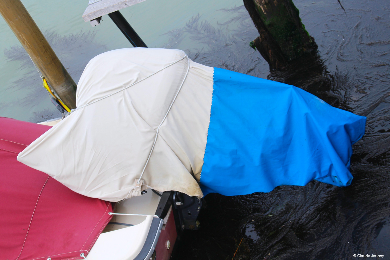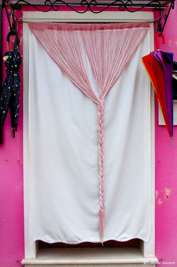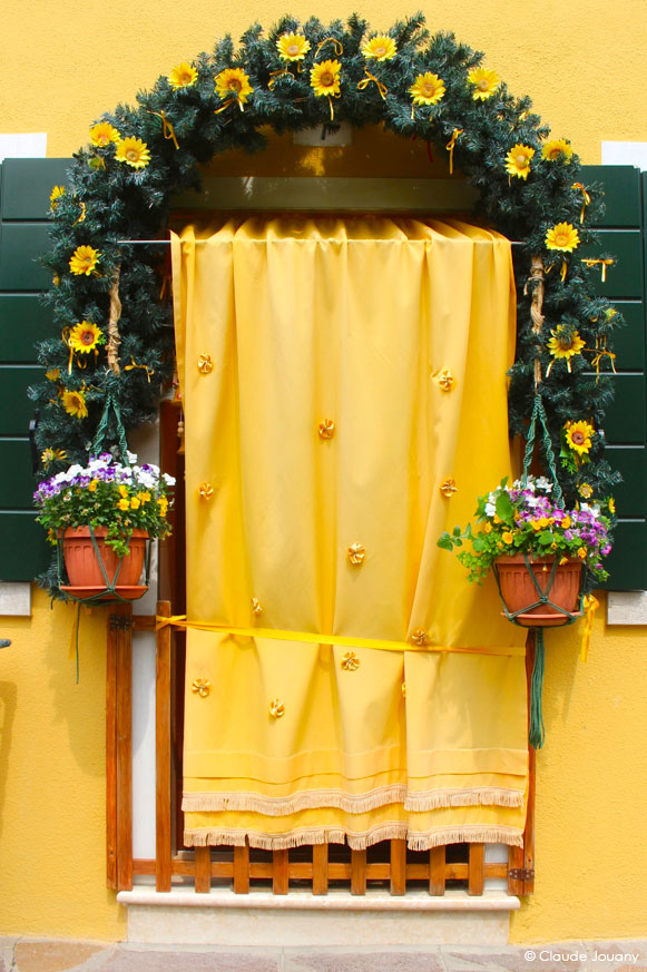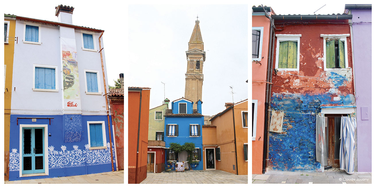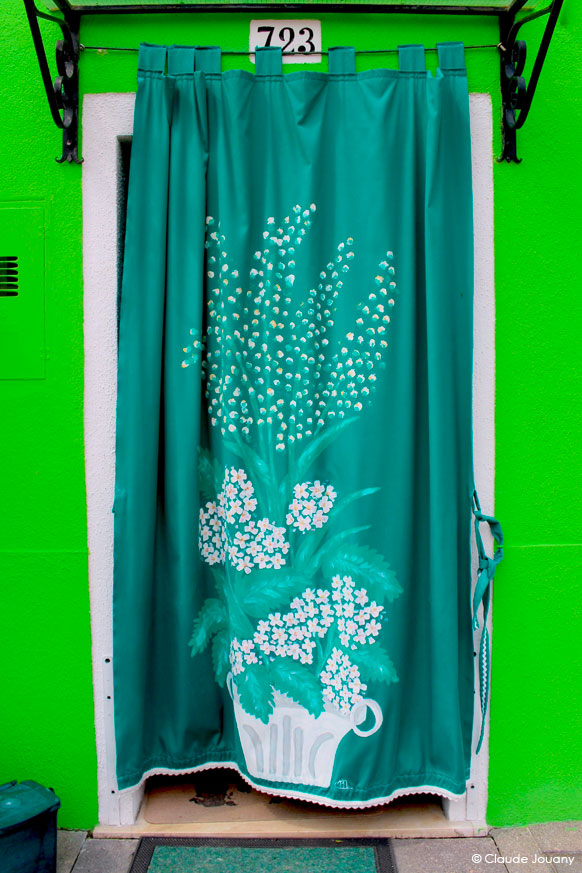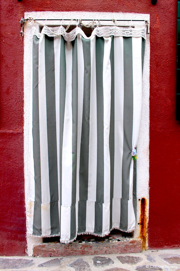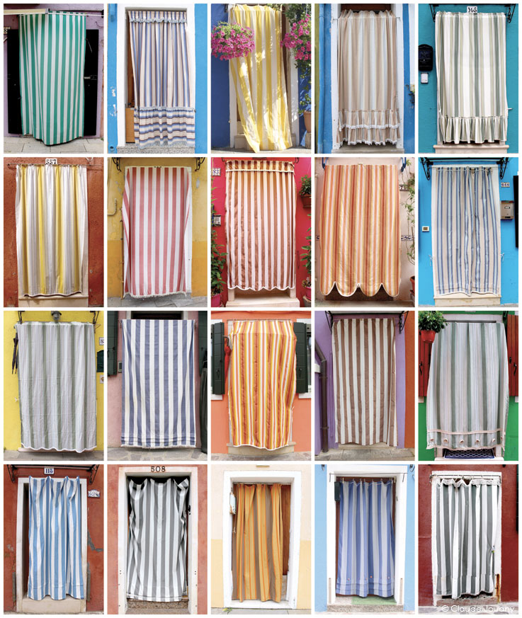 Ici sur l’île de Burano, chaque détail semble raconter une histoire d’intimité et de personnalisation. C’est dans le choix des tissus qui ornent les portes pour protéger du soleil son entrée, ou dans la manière dont des bâches à motifs recouvrent les moteurs des bateaux, que se dessine une relation singulière entre les habitants et leur environnement.