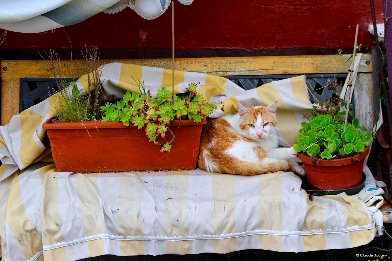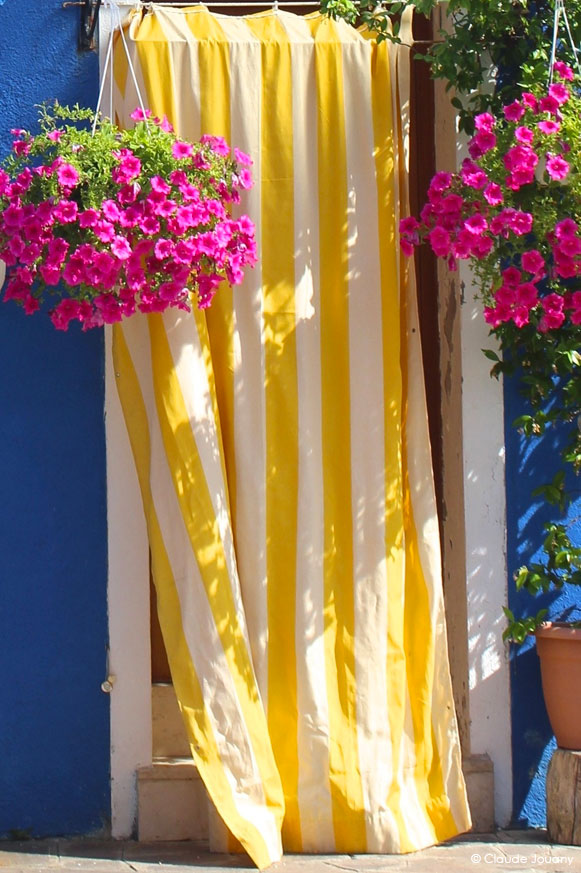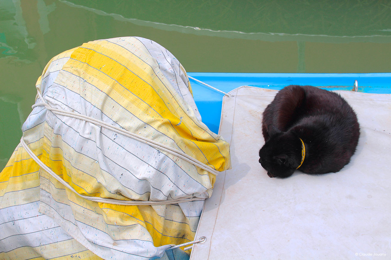 Mon travail photographique s’attache à capter cette interaction, où la fonctionnalité se mêle à l’expression personnelle, où ces gestes du quotidien deviennent des formes de créativité. Les couleurs vives et les motifs variés, tant devant les portes que sur les bateaux, créent un dialogue subtil entre utilité et esthétique, accompagnent et font lien avec la mise en couleur des maisons par ses habitants.