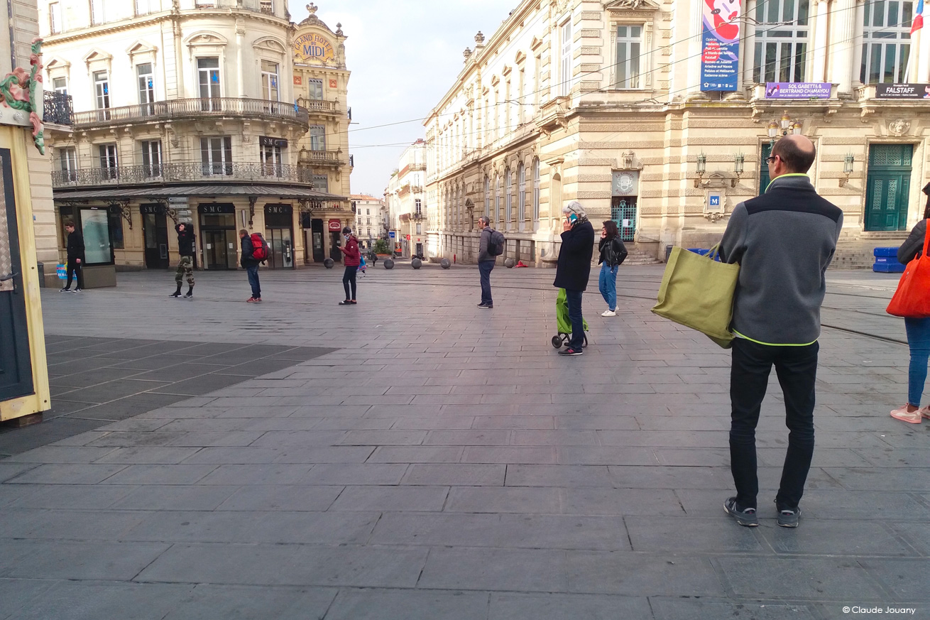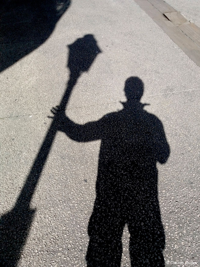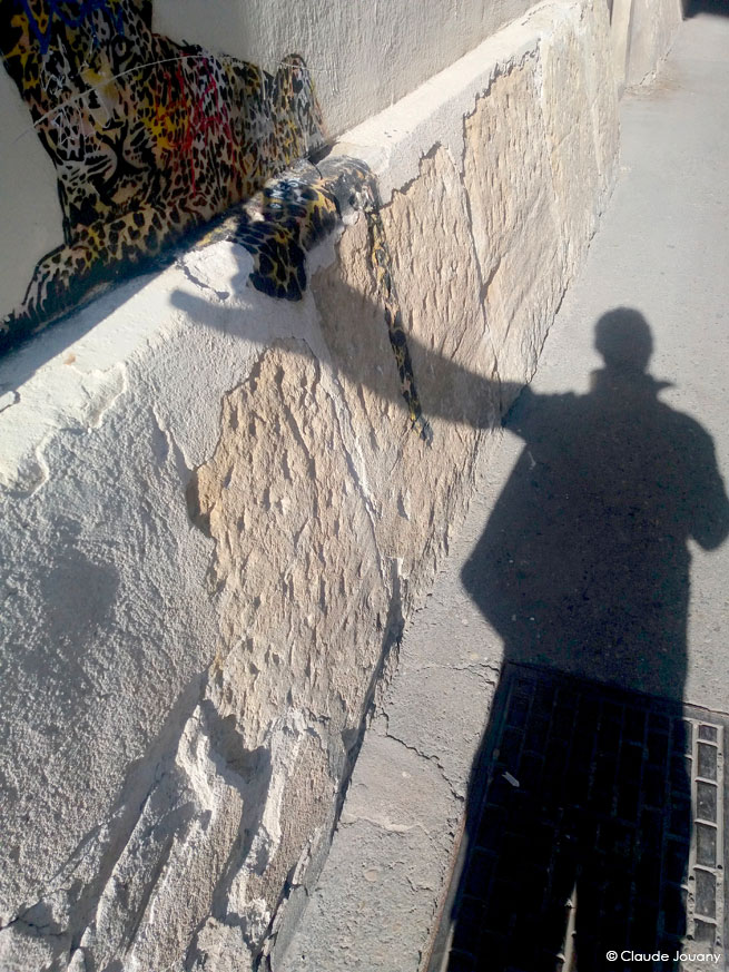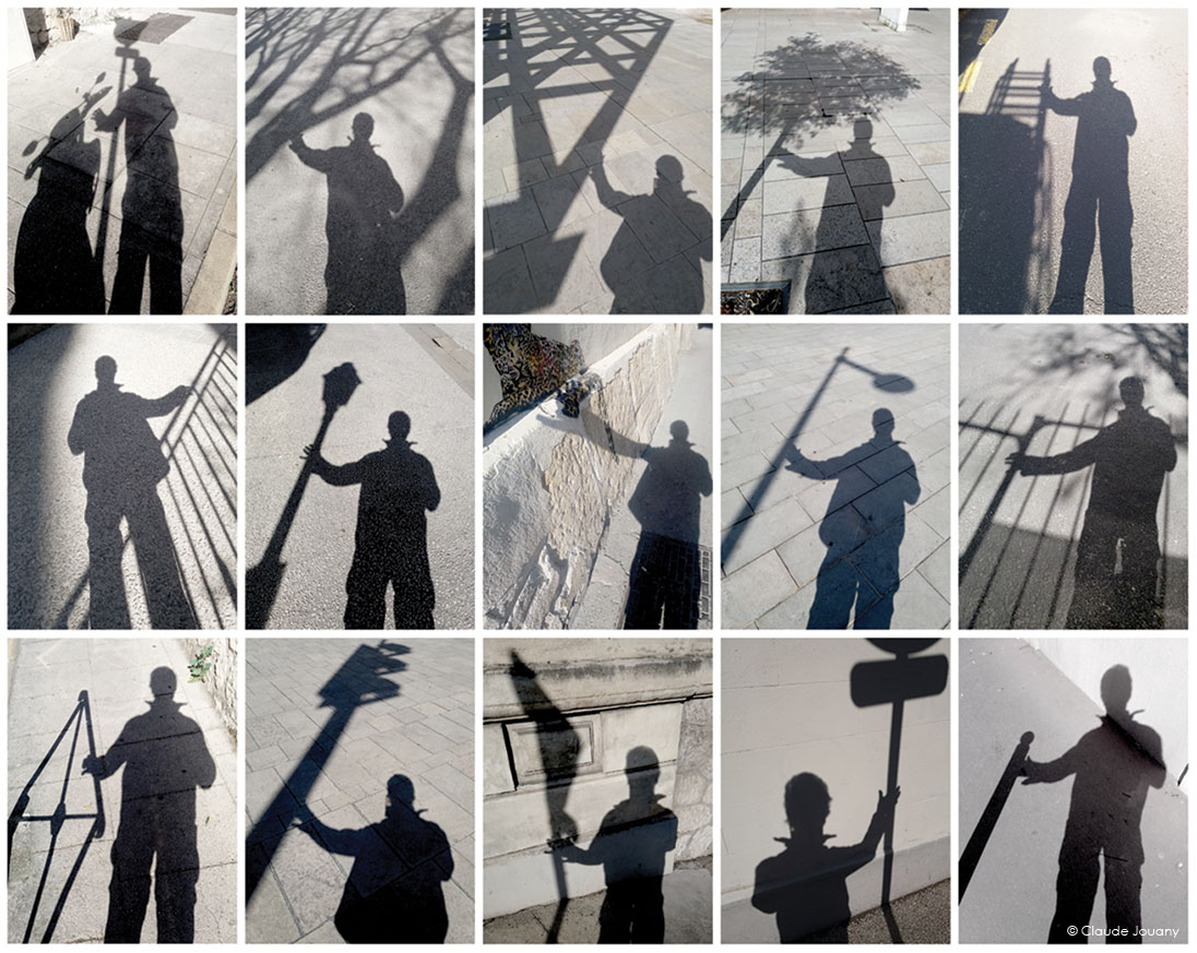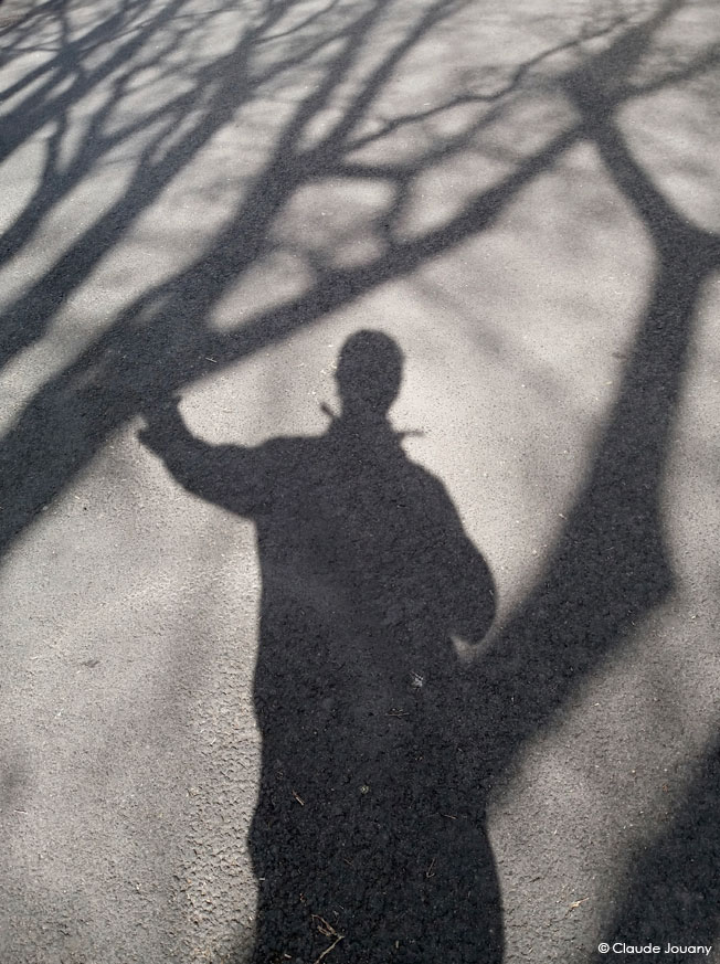 Covid 19 rode dans la ville déserte où ne restent pour seule animation, que chants d'oiseaux, couleurs des fleurs et ombres portées. Je ne croise que la mienne qui s'aventure avec les ombres urbaines et celles de la nature avant de rencontrer "l'image" d'un autre mammifère attentif et en questionnement.