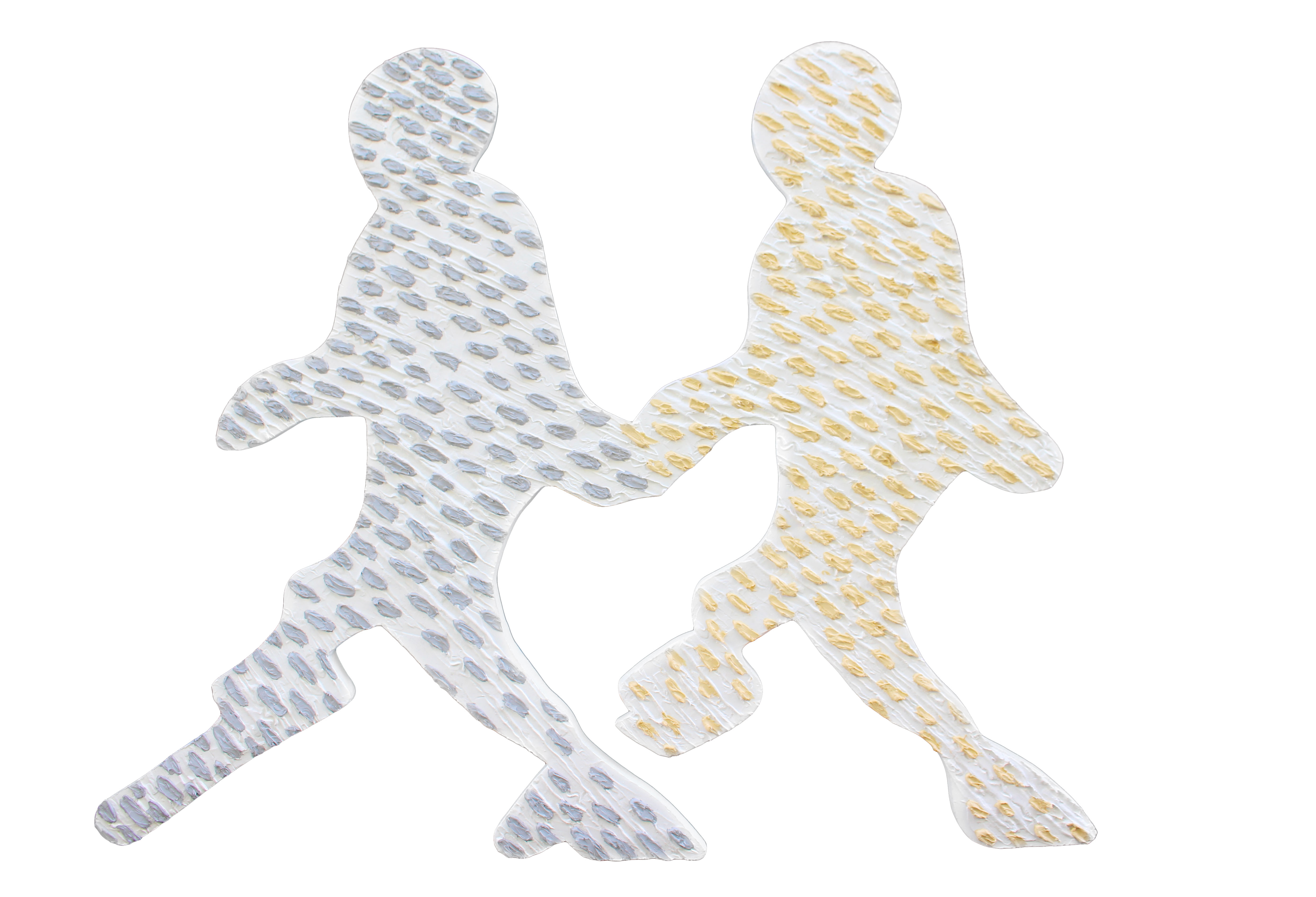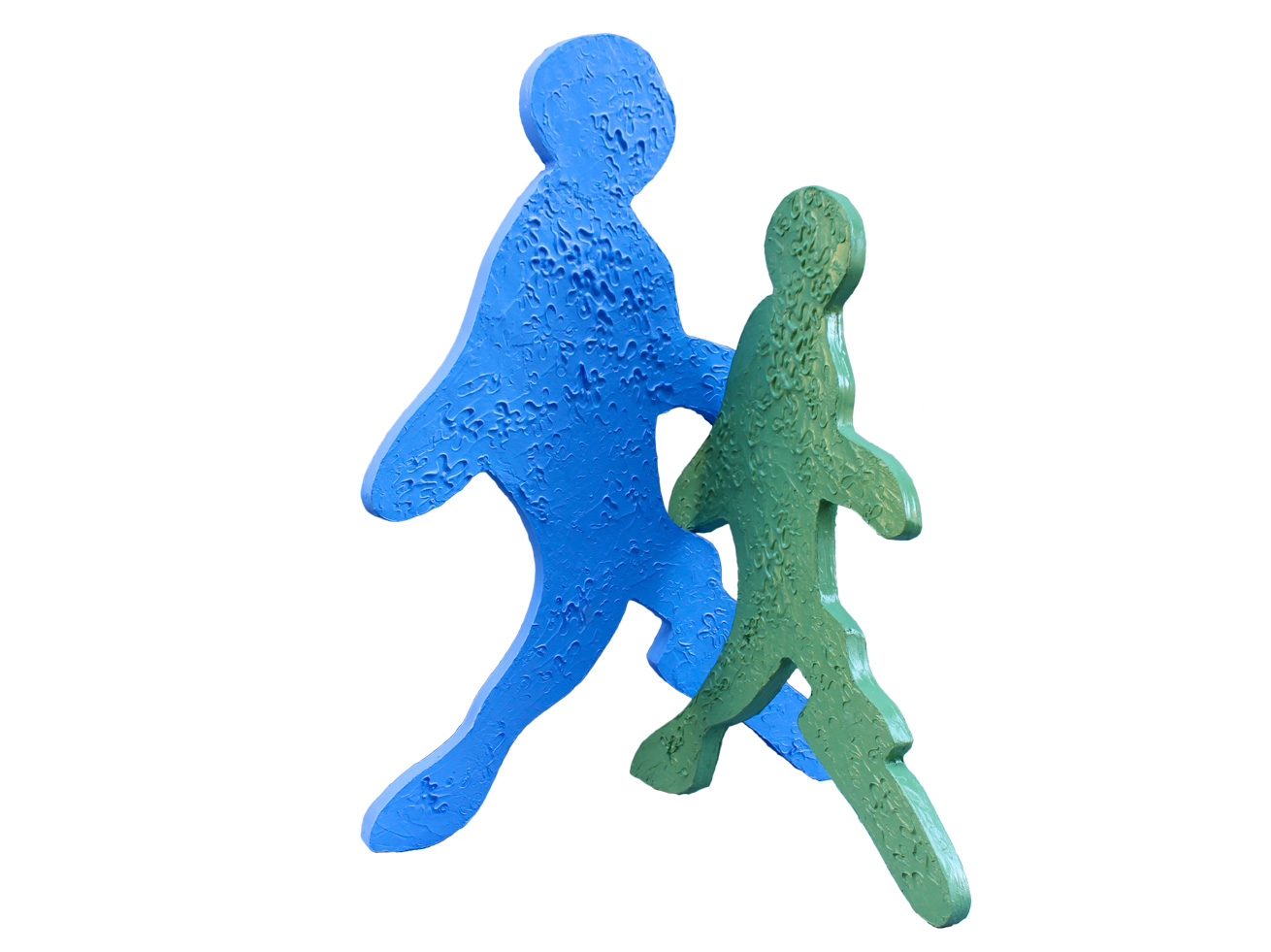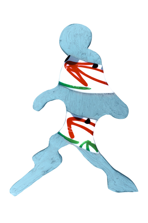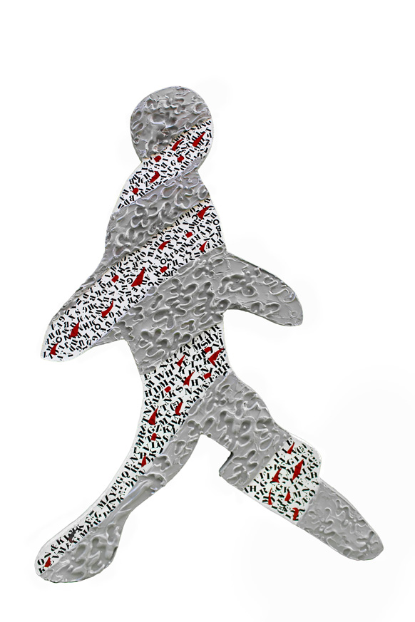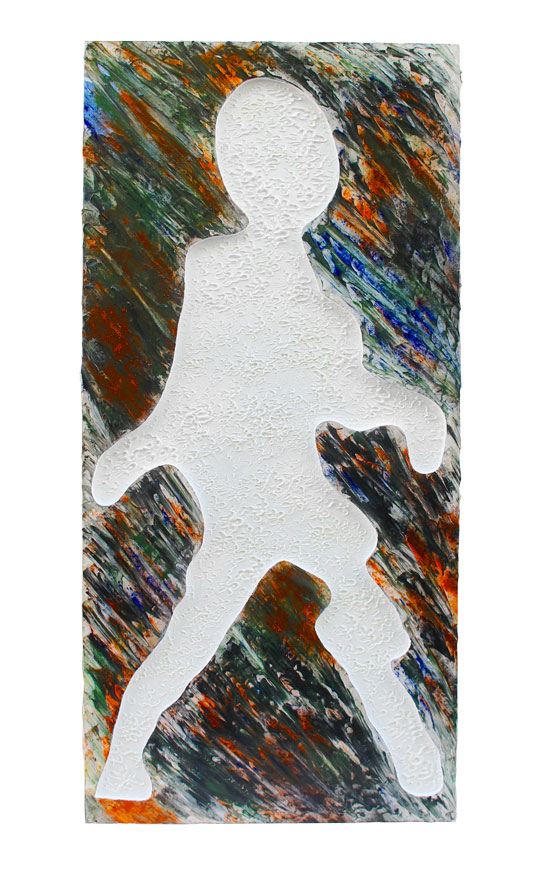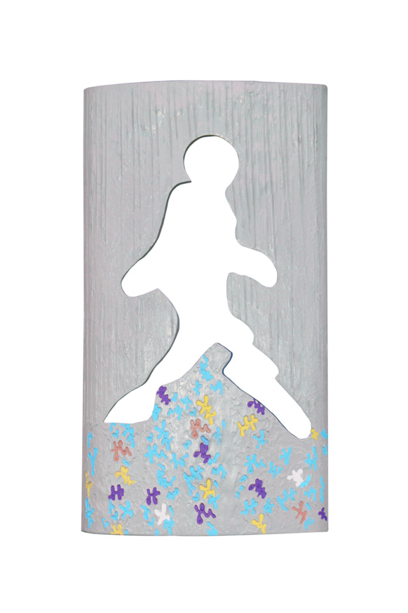 Le personnage « En Avant! » est né en 2006 sous la forme d’une trilogie pour évoquer l’histoire d’une mise en avant… aller vers soi, vers le monde, vers l’autre. Trois grands panneaux muraux relief en fibre de verre et couverte peinture sont alors réalisés.