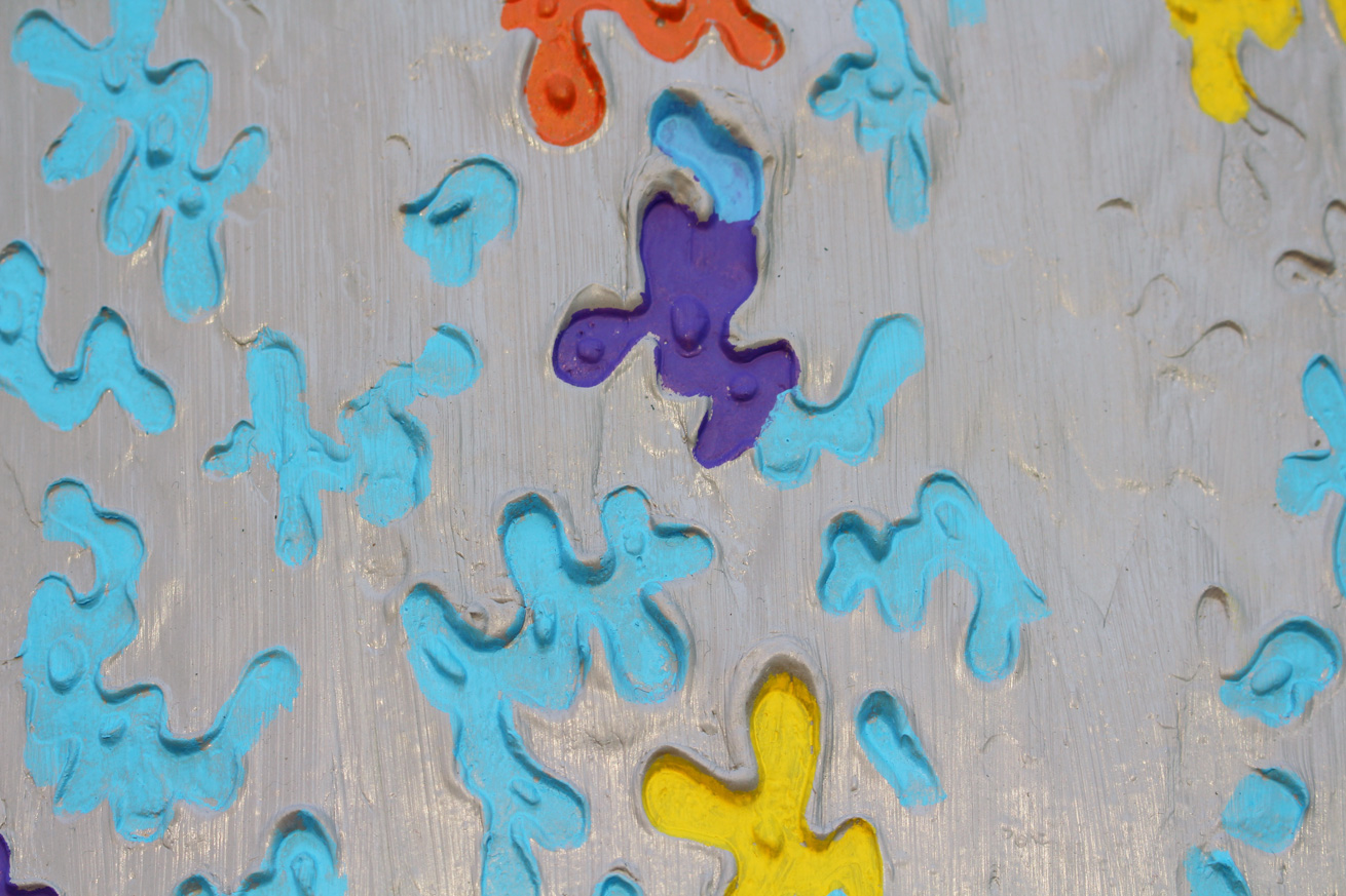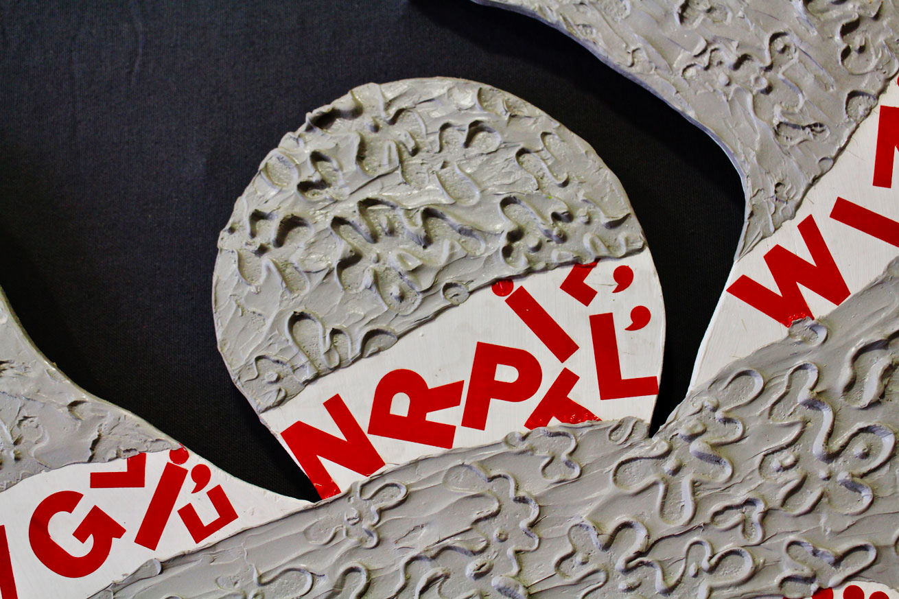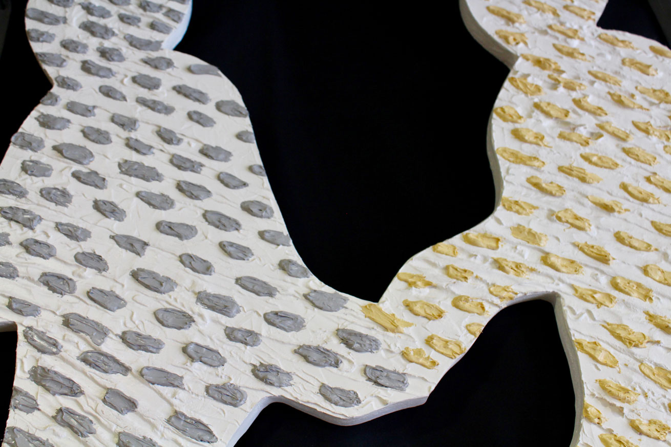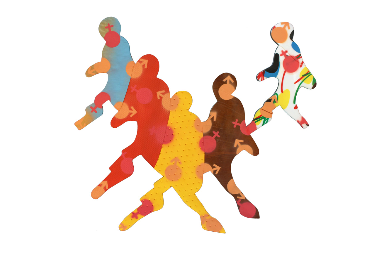 Le personnage « En Avant! » est né en 2006 sous la forme d’une trilogie pour évoquer l’histoire d’une mise en avant… aller vers soi, vers le monde, vers l’autre. Trois grands panneaux muraux relief en fibre de verre et couverte peinture sont alors réalisés.