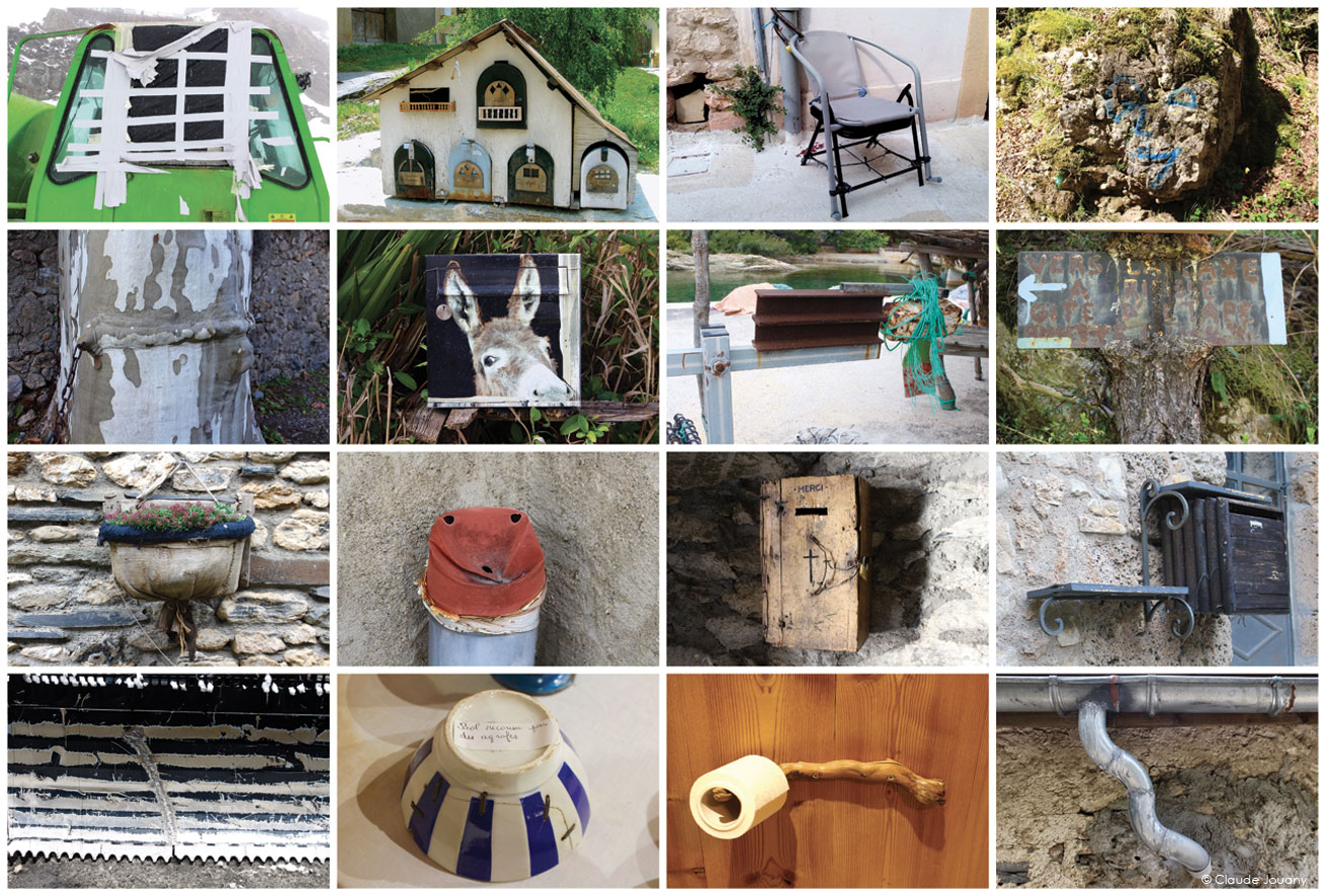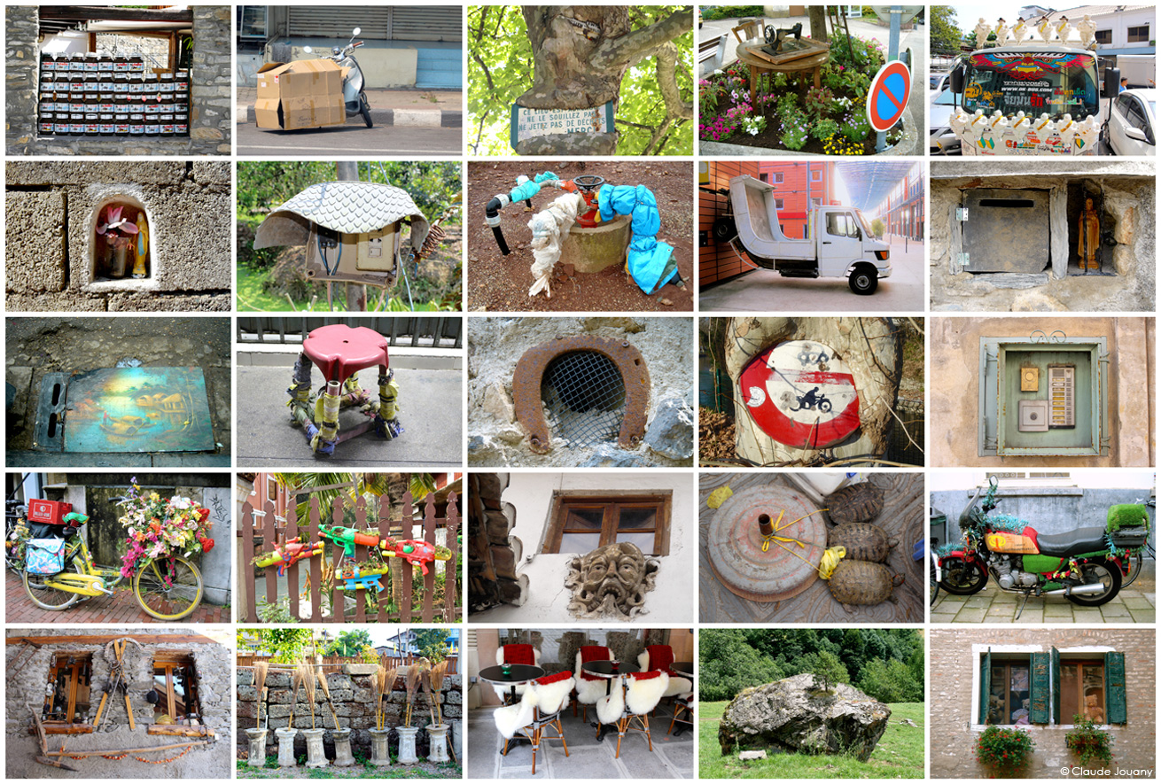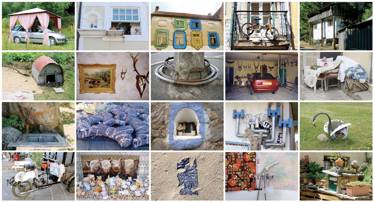 Je suis particulièrement sensible à l’expression singulière de mes contemporains, que ce soit dans leur cadre de vie quotidien ou leur environnement immédiat. Ce qui me touche dans ces expressions, c’est qu’elles participent à l’intérêt et à la richesse des lieux, même dans les localités les plus banales – qu’elles soient urbaines ou rurales. À travers de simples détails, qui se relient les uns aux autres, un espace prend vie et se révèle. Un art marginal qui éveille l’émotion et provoque l’inattendu.