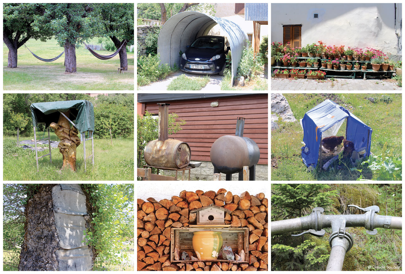 L’association des photographies par panneaux reflète cette captation de « détails » observés lors de promenades en ville ou de randonnées en milieu rural. Lorsque les villes et villages se transforment, cet art de l’intimité et du partage, qui mériterait d’être préservé au même titre que le patrimoine culturel, est souvent effacé dès lors qu’il détonne avec l’uniformité ambiante ou échappe à une logique préétablie.