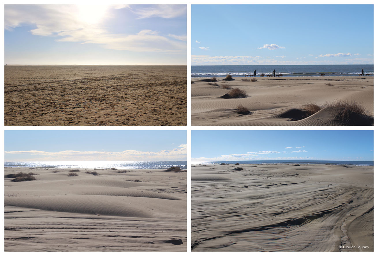 Au fil des mois, avec le déplacement des dunes, de nouvelles étendues d’eau, d’arbustes et de végétaux émergent, la plage de l’Espiguette est une découverte permanente !