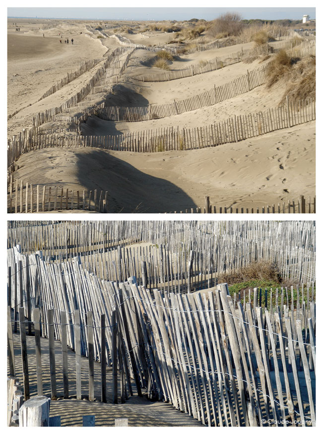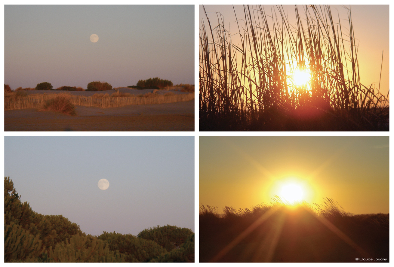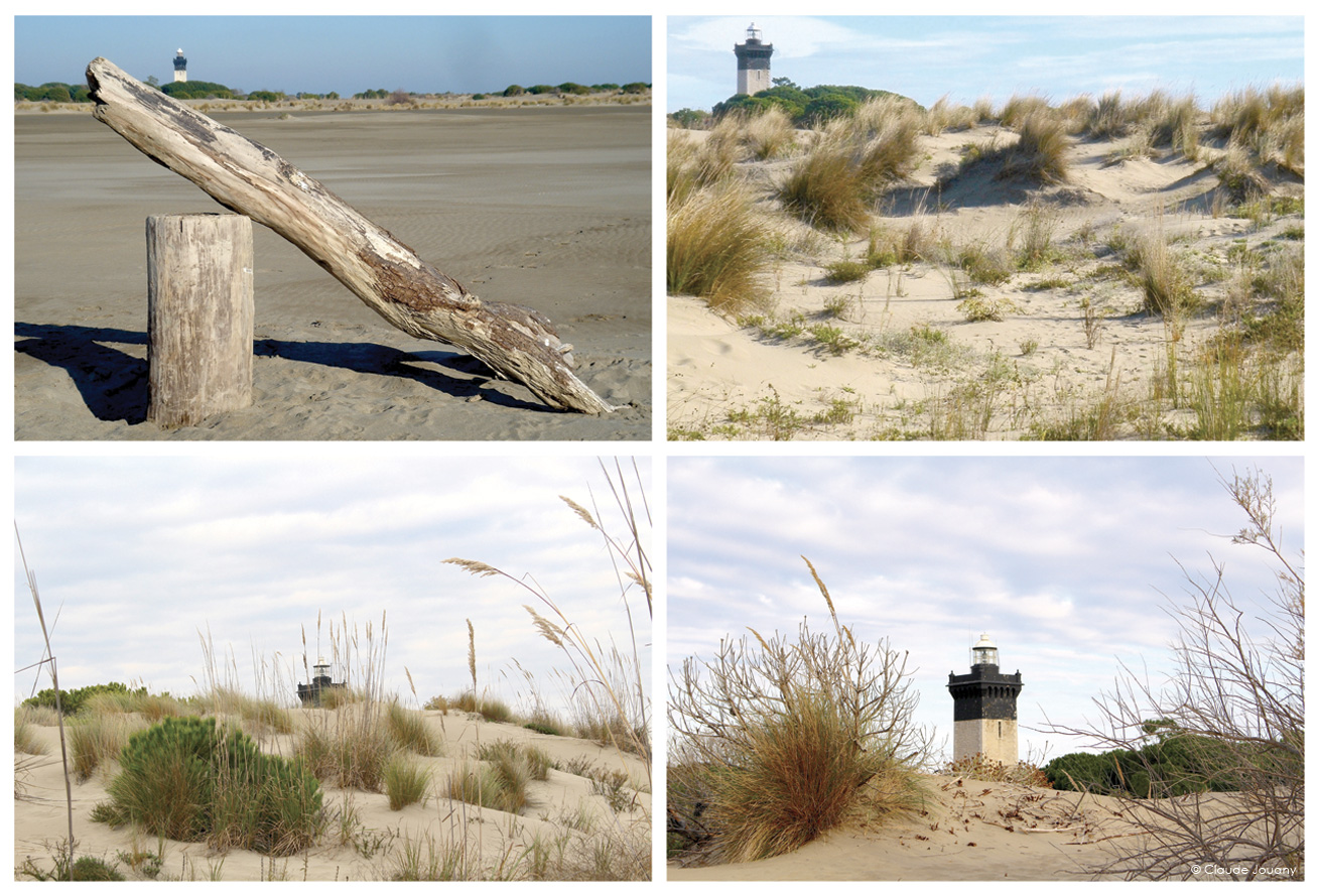 Depuis le sommet du phare de l’Espiguette, le goéland, avant de s’élancer sous le vent, a la chance de contempler une étonnante et belle ribambelle de pins, bousculée par un désert de magnifiques dunes de sable blond s’étendant à perte de vue.